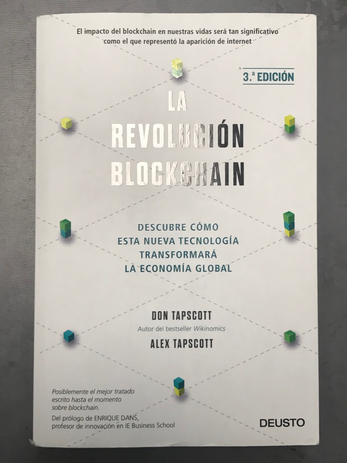 Este manual me ha servido para aceptar que estará presente en todo lo que nos rodee dentro de unos años (como ahora la electricidad). Este libro (que para “usuarios” como yo podría tener una extensión menor a la mitad) me ha servido para reflexionar sobre aspectos clave del desarrollo tecnológico. Como que éste deber garantizar PSI (Privacidad, Seguridad e Inclusión), algo que internet no lo consigue. Blockchain puede permitir una nueva generación de internet que cumpla con PSI, en la que seamos dueños de nuestro “yo virtual” y que lo podamos compartir en la proporción que deseemos.